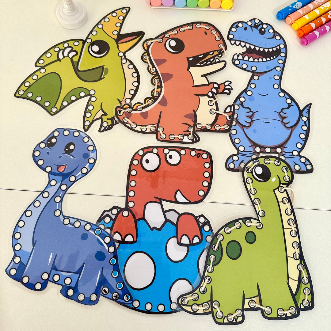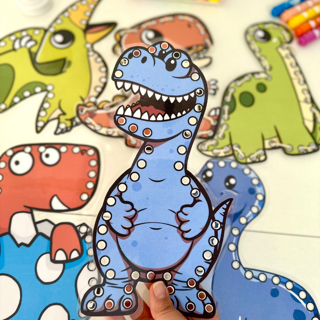 🖨️Archivo en formato PDF listo para imprimir. Incluye 7 dinosaurios para enhebrar.